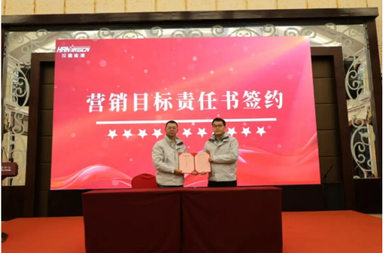 At the solemn signing ceremony, the heads of each marketing department respectively signed the 2026 annual marketing target responsibility agreement, demonstrating their firm determination and confidence in completing the annual tasks. Subsequently, the conference announced the "Hanxing Energy 2025 Annual Excellence and Pioneer Recognition Decision", solemnly commending the advanced collectives and individuals with excellent performance, fully acknowledging their outstanding performance and important contributions in the past year.